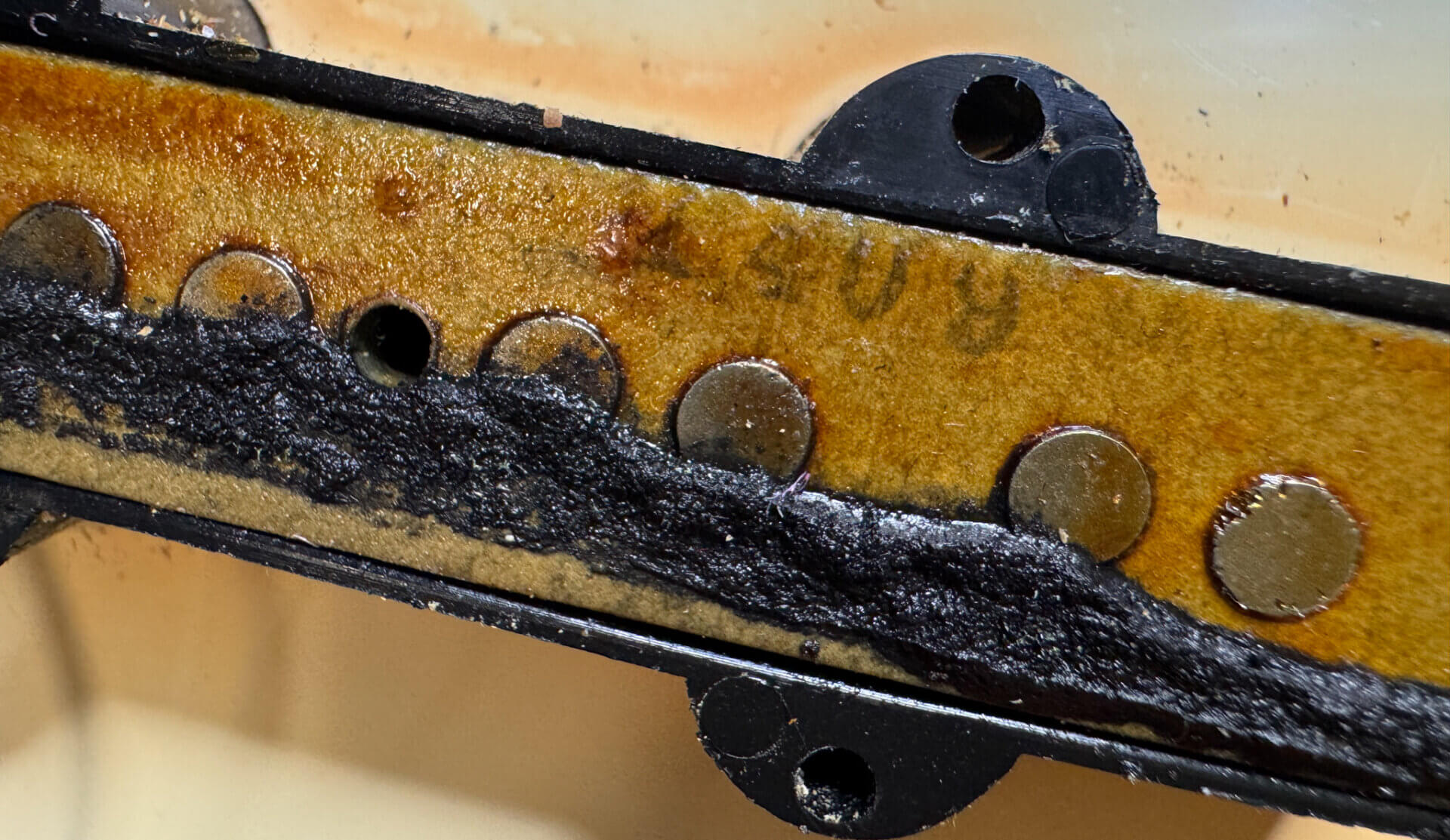 Paljon luonnollista käytönjälkeä/maalilohkeamia rungossa, ei ylimääräisiä reikiä